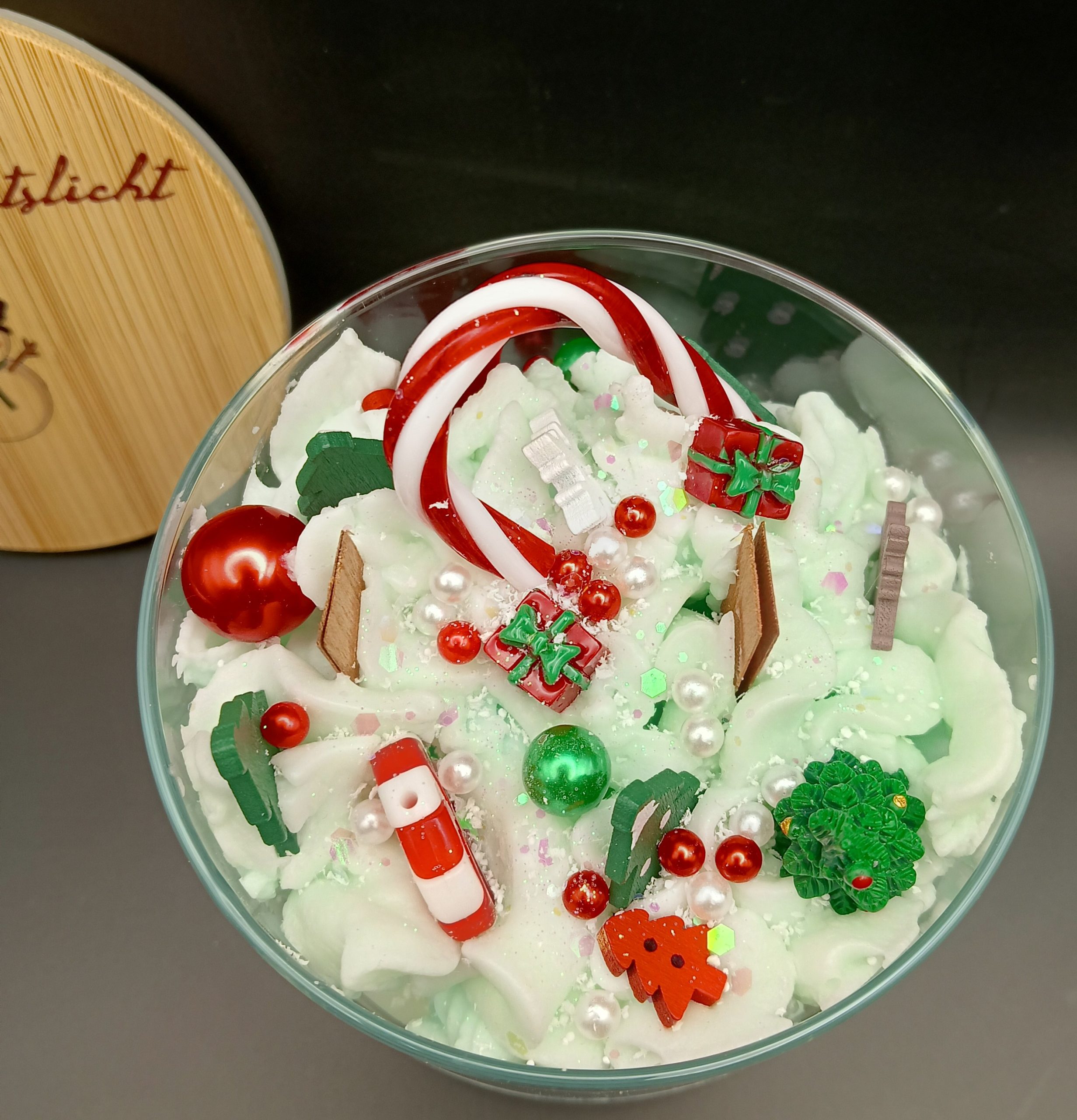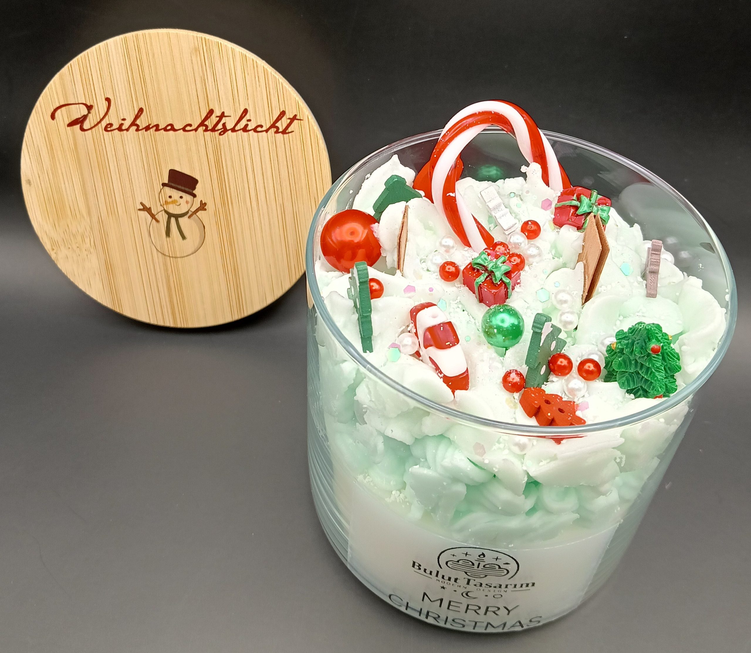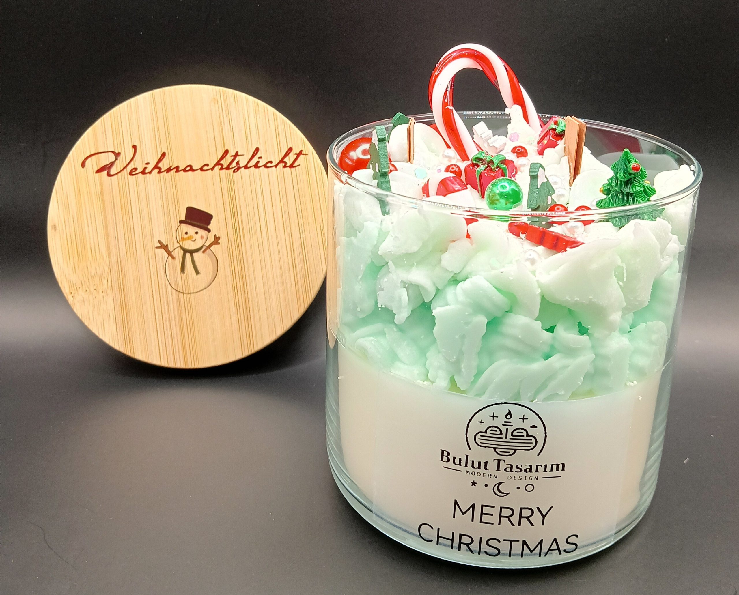 YEŞİL VE BEYAZ RENK GEÇİŞLERİYLE KARLI BİR NOEL KONSEPTİNİ ANDIRIRKEN, ÜZERİNDEKİ ŞEKER KAMASI, HEDİYE KUTULARI, ÇAM AĞACI VE YILBAŞI SÜSLERİ İLE TAM BİR GÖRSEL ŞÖLEN SUNAR.